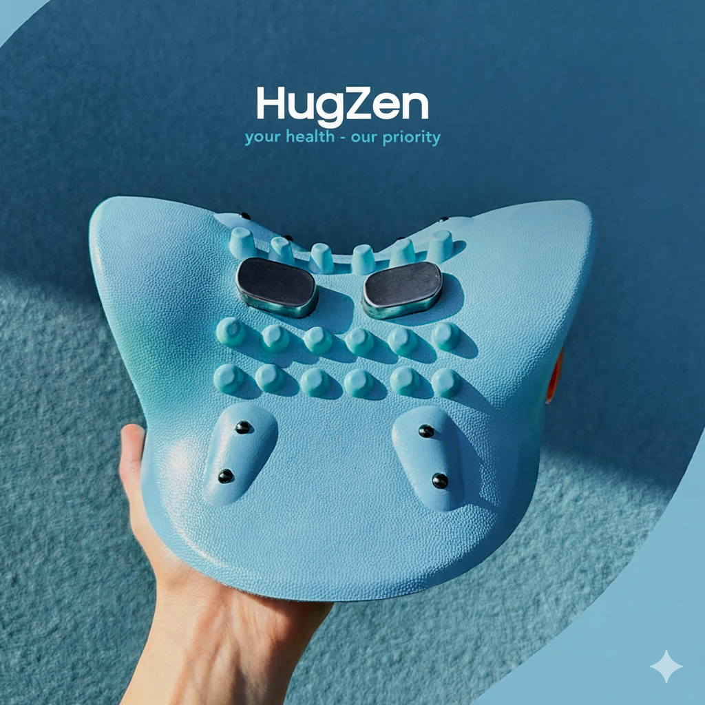 S'allonger sur le masseur HugZen pendant seulement 15 minutes par jour améliore progressivement la circulation sanguine, détend les muscles tendus, restaure la courbure naturelle du cou et élimine les douleurs cervicales grâce à la combinaison du massage, des étirements, de l'électrostimulation musculaire et de la chaleur.